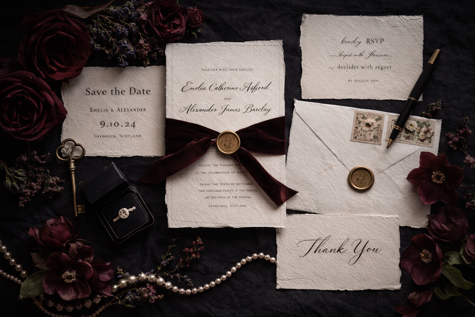 During a brief Zoom consultation, we’ll discuss your event, aesthetic direction, paper selections, and the elements you’d like included in your suite. This conversation allows us to prepare a tailored proposal for your stationery.
